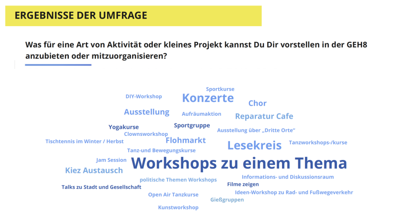 In late summer, we entered the participatory phase of the GEH8 future concept. To this end, we invited everyone to take part in an online survey in August and to a participatory workshop with a neighborhood coffee party in September. We are very pleased with the response so far and would like to thank everyone who took part. Over the winter, we will evaluate all the results and incorporate them into our concept, which we will present to you in 2026.
